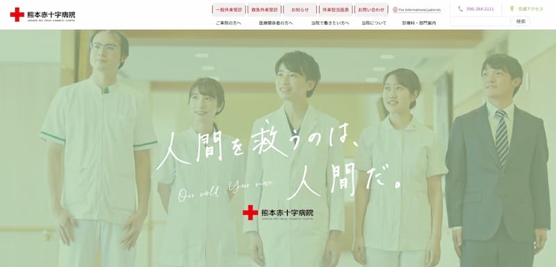 熊本赤十字病院のホームページは、赤十字のシンボルカラーを活かした温かみのあるデザインが印象的です。
