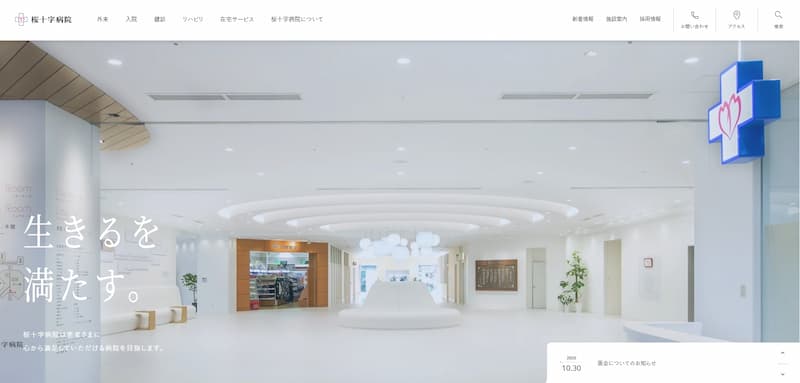 桜十字病院の公式サイトは、清潔感のある白を基調としたデザインが特徴的です。
