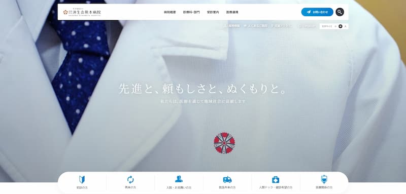 済生会熊本病院の公式サイトは、落ち着いた青と白を基調としたモダンで洗練されたデザインが印象的です。