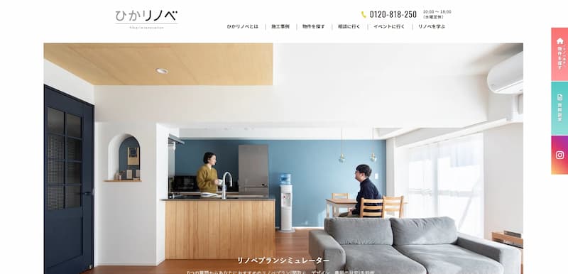 ホームページは、親しみやすく分かりやすいデザインで、リノベーション初心者でも安心して情報を得られる構成が特徴です。