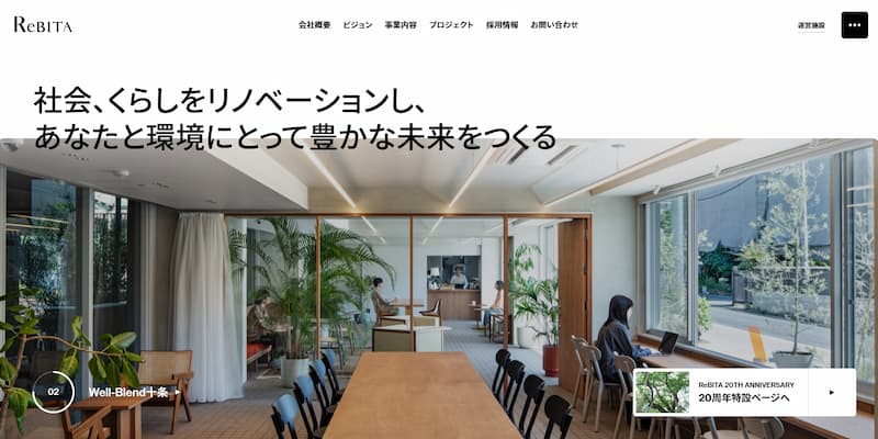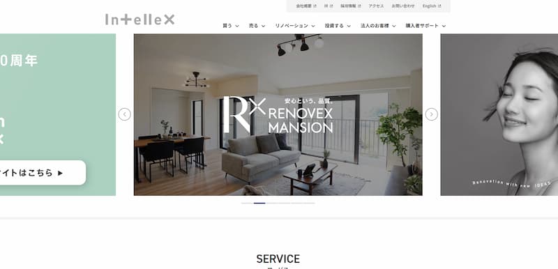 ホームページはスタイリッシュで現代的なデザインが特徴で、リノベーション事例が美しいビジュアルとともに紹介されています。