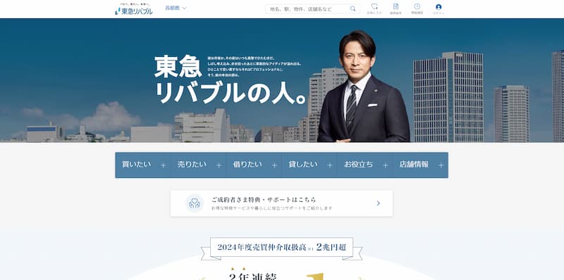 東急リバブルは、大手不動産仲介会社として確かな実績を誇るサービスです。ホームページは清潔感のあるデザインで、初めての方でも迷わず目的の情報にたどり着ける構成が魅力です。