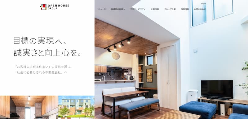 ホームページはシンプルで洗練されたデザインが特徴で、物件の魅力を最大限に引き出すビジュアル表現が印象的です。