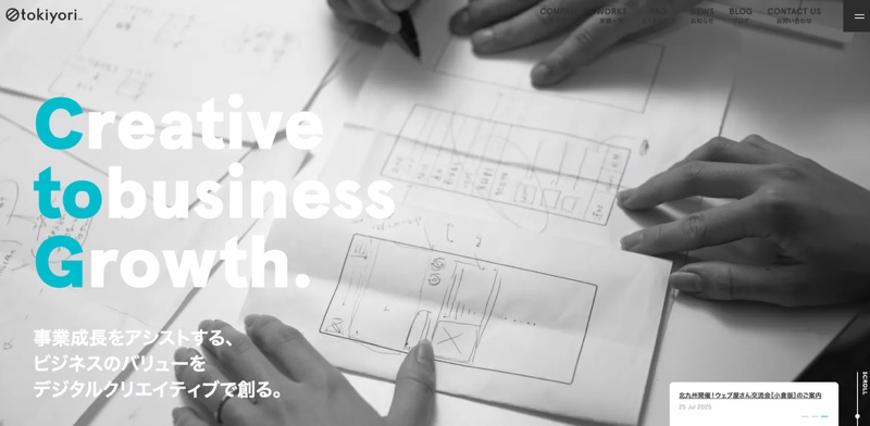 トキヨリ株式会社は、福岡県北九州市を拠点に、ECサイト・通販サイトの構築をはじめ、ホームページ制作やアプリ開発まで幅広く手がけるデジタルクリエイティブ会社です。