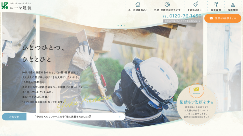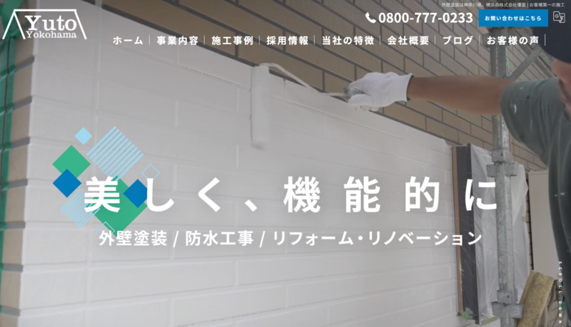 株式会社優塗のホームページは、冒頭で流れる施工中の動画が印象的で、リアルな職人の動きを通じて技術力が伝わってきます。