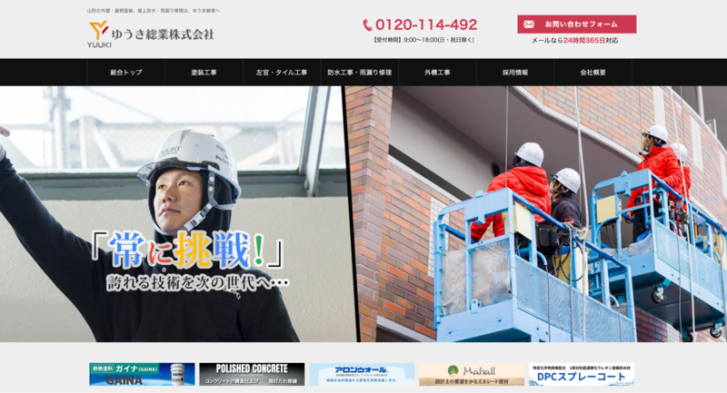 ゆうき総業株式会社のホームページは、豊富な施工事例を写真付きで多数掲載しており、ユーザーが具体的な仕上がりイメージをつかみやすい構成です。