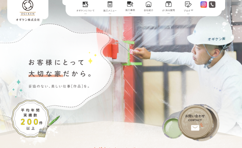 オギケン株式会社のホームページは、丸みのあるフォントや柔らかい色づかいが印象的で、相談のしやすさを演出している点が特徴的です。
