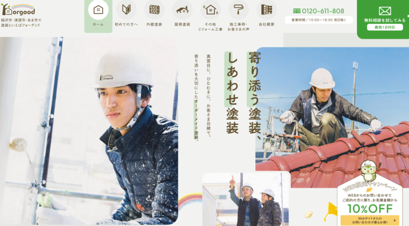 「ただ塗るだけじゃない」というキャッチコピーが目に留まりやすく、会社のこだわりが伝わりやすいデザインになっています。